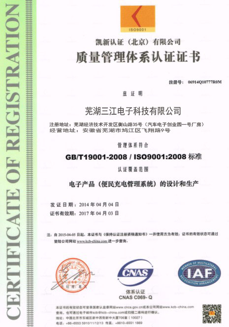 蕪湖三江電子科技有限公司,位于美麗的江城蕪湖,是一家目前國內(nèi)專業(yè)從事智能式自助產(chǎn)品的研發(fā)、生產(chǎn)、銷售及自助產(chǎn)品服務(wù)為一體的科技型企業(yè)。主要經(jīng)營:電動(dòng)車充電站,電動(dòng)車充電站配件,小區(qū)充電站,便民充電站、投幣充電站、手機(jī)支付充電站、刷卡充電站、智能充電站、智能充電系統(tǒng)等。歡迎大家來公司參觀考察!公司秉承“顧客至上,銳意進(jìn)取”的經(jīng)營理念,堅(jiān)持“客戶至上”的原則為廣大客戶提供優(yōu)質(zhì)的服務(wù)。歡迎廣大新老客戶惠顧!